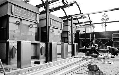 昨天下午,北青報(bào)記者在北京站站前廣場(chǎng)看到,進(jìn)站口西側(cè)已經(jīng)被施工圍擋封住,里面的工人師傅正在進(jìn)站口安裝“刷臉”自動(dòng)檢票閘機(jī)。6臺(tái)新設(shè)備將于本月底安裝完畢,春運(yùn)前投入使用。