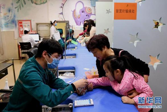1月3日,在鄭州市兒童醫(yī)院輸液大廳,醫(yī)務(wù)人員在為患兒輸液。當(dāng)下正值流感高發(fā)季節(jié),河南省鄭州市各大醫(yī)院的兒科門(mén)診就診患者數(shù)量增多,其中大部分是呼吸道疾病的孩子。醫(yī)務(wù)人員提醒市民,預(yù)防流感應(yīng)保持良好的衛(wèi)生習(xí)慣,兒童患流感后要及早就醫(yī),防止重癥流感發(fā)生。新華社記者 李安 攝