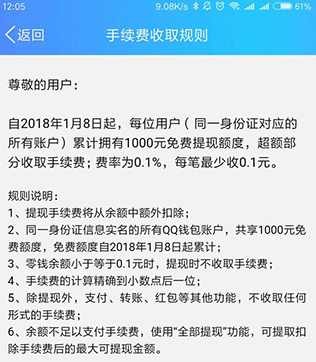 QQ錢包提現(xiàn)收取手續(xù)費(fèi)