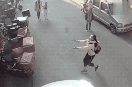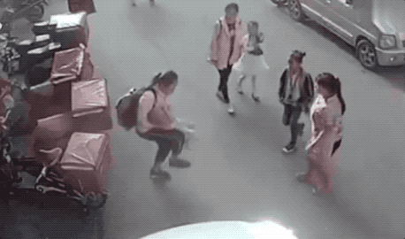 而這個小女孩,在面對樓上掉下來的孩子時,立刻沖上前,勇敢地伸出雙手……
