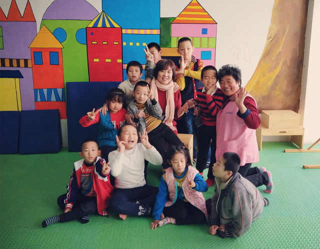 賈秀芳與康復(fù)中心的腦癱患兒(2017年2月14日攝)