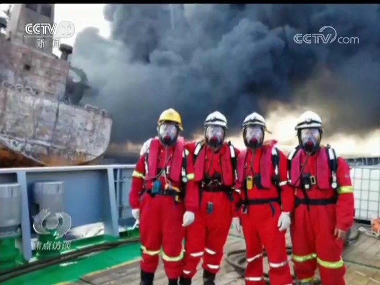 交通運(yùn)輸部東海救助局救助指揮處處長蔣文輝說:”除了前面當(dāng)時(shí)現(xiàn)場前頭一號(hào)艙跟首間艙的位置,后面整個(gè)都是在燃燒、爆炸以及濃煙覆蓋中,包括我們后面的那個(gè)生活區(qū),整個(gè)在爆炸和燃燒、濃煙中?!?/p>