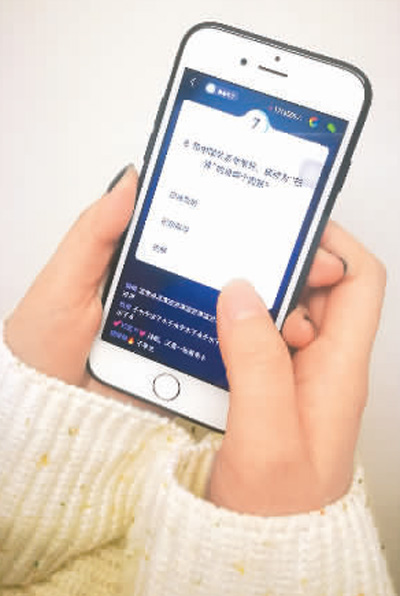 “人民日?qǐng)?bào)海外版?zhèn)b客島的作者一般自稱為島叔和什么?”“當(dāng)然是島妹?。 卑殡S著手機(jī)屏幕上緊張的10秒倒計(jì)時(shí),武漢的蔡家欣迅速地點(diǎn)擊了正確答案。她的微信群里,一起答題的小伙伴們都在一邊緊張地答題,一邊熱烈地討論著。