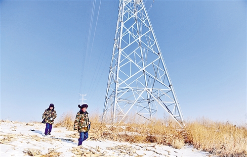 1月26日,楊忠武(右)與宋金泊在雪地里徒步行進(jìn)。為保障線路運(yùn)行,國(guó)家電網(wǎng)長(zhǎng)春供電公司輸電運(yùn)檢室?guī)щ娮鳂I(yè)班班長(zhǎng)楊忠武和徒弟宋金泊每天都要在雪地里徒步巡線3個(gè)多小時(shí)。
