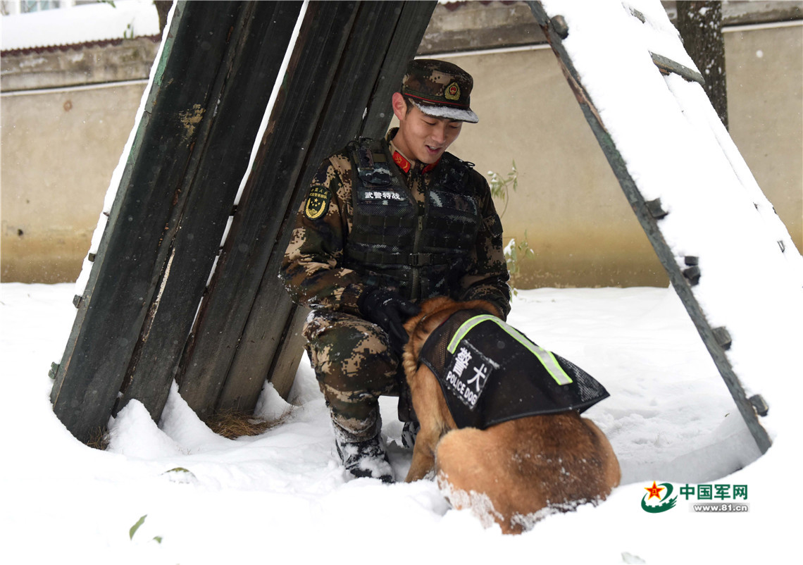1月27日,訓(xùn)練間隙,警犬“魯克”一頭扎進(jìn)警犬班班長(zhǎng)王營(yíng)廣的懷里撒嬌。