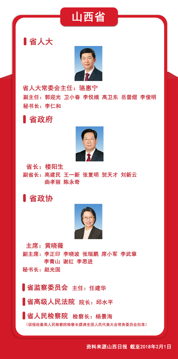 圖文速覽:31省區(qū)市新一屆人大政府政協(xié)領導班子