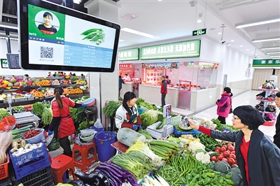 安徽省合肥市瑤海區(qū)勝利智能農(nóng)貿(mào)市場,每個攤位都安裝了電子屏,只需掃碼即可實現(xiàn)移動支付,還可在平臺對商家進(jìn)行點評、維權(quán)投訴等。掃碼“滴”聲之后,現(xiàn)實與虛擬被連接,這種黑白方格組成的“時代符號”(二維碼)帶來了便利、快捷和驚喜?!埓髰彅z(新華社發(fā))