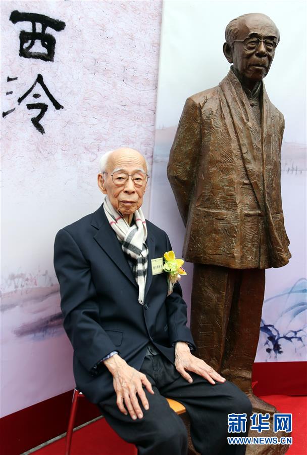 國學大師饒宗頤出席其銅像揭幕暨“藝聚西泠”展覽開幕典禮(2012年12月14日攝)。新華社記者 李鵬 攝