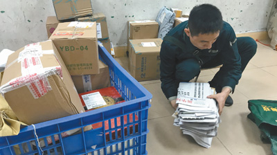 春節(jié)將至,又到了萬家團圓的日子。但環(huán)市西路投遞部有許多像羅金城一樣的年輕人,并沒有回家的打算。投遞部主任黃大兵表示:“每年過節(jié)前夕,都是我們業(yè)務最忙的時候,平時一天3000多件,現(xiàn)在要增加一倍多。”