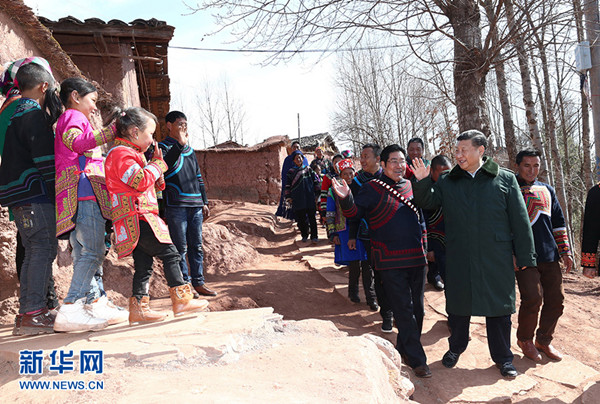 2018年2月11日上午,習(xí)近平驅(qū)車(chē)2個(gè)多小時(shí),從西昌市來(lái)到位于大涼山深處的昭覺(jué)縣三岔河鄉(xiāng)三河村、解放鄉(xiāng)火普村,走進(jìn)彝族貧困群眾家中,問(wèn)冷暖、聽(tīng)心聲。