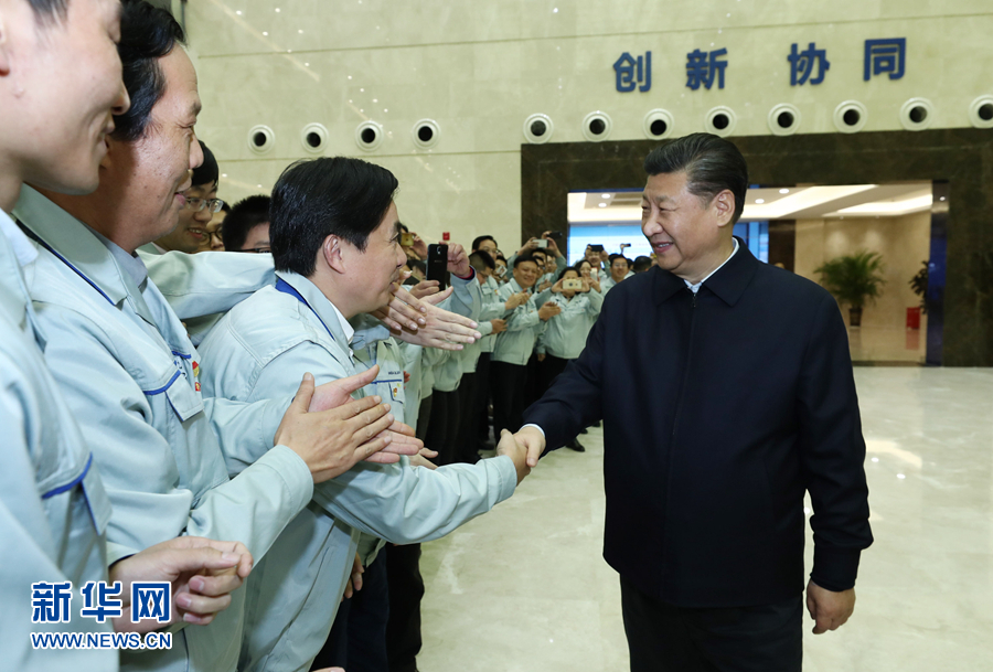這是2月11日下午,習(xí)近平在成都中電熊貓顯示科技有限公司考察時(shí)同員工親切握手。 新華社記者 鞠鵬 攝