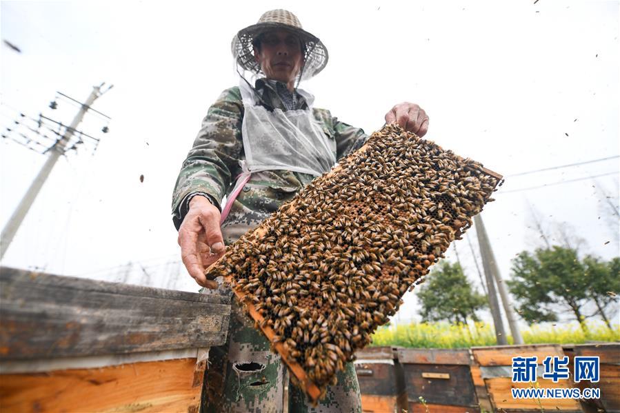 3月14日,來(lái)自安徽的蜂農(nóng)在湖北省潛江市龍灣鎮(zhèn)的油菜花地里放養(yǎng)蜜蜂。早春時(shí)節(jié),湖北省潛江市20多萬(wàn)畝油菜花長(zhǎng)勢(shì)好、流蜜足,來(lái)自全國(guó)各地的400多名養(yǎng)蜂專業(yè)戶在此收獲“甜蜜”。 新華社發(fā)(吳燕軍 攝)