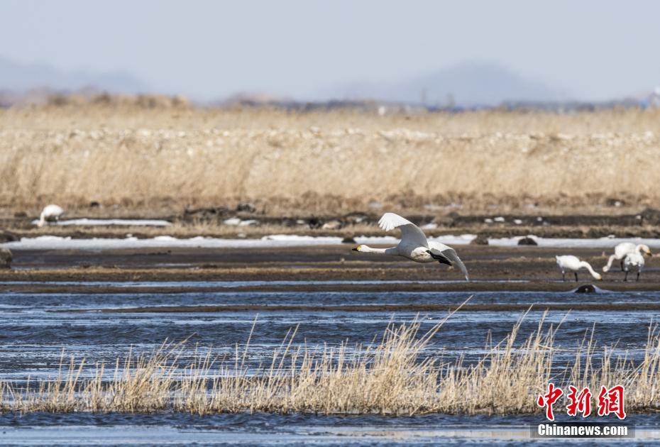 3月20日,天鵝飛過湖面。日前,內(nèi)蒙古自治區(qū)呼倫貝爾市陳巴爾虎旗陸續(xù)迎來大量北歸天鵝。據(jù)了解,每年四月份,成群的天鵝從中國南方遷徙到呼倫貝爾產(chǎn)卵繁殖,而今年三月中旬起,陳巴爾虎旗境內(nèi)便迎來大量回歸天鵝,實屬罕見。中新社記者 武軍 攝
