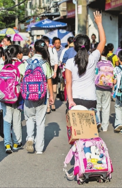 武漢市武昌區(qū),小學(xué)生們拖著沉重的書(shū)包放學(xué)回家。新華社記者 肖藝九攝
