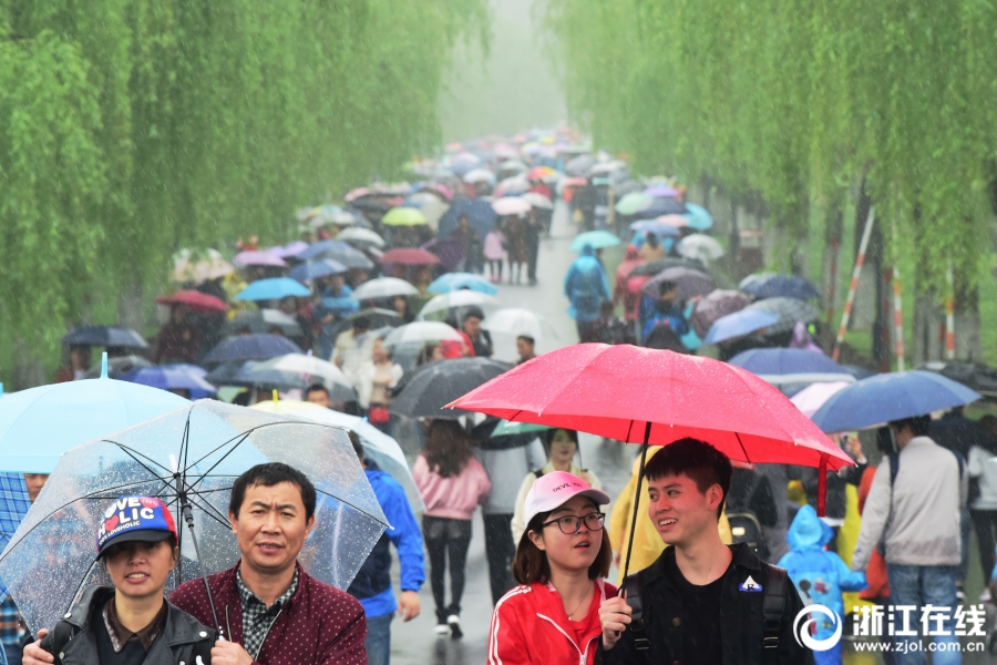 杭州:清明時節(jié)雨紛紛 西湖游客雨中游