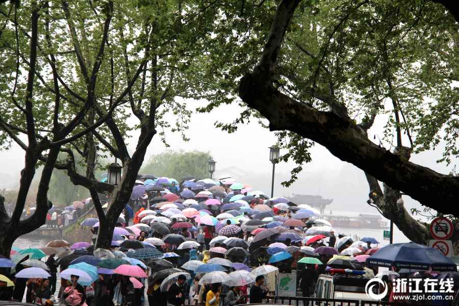 杭州:清明時(shí)節(jié)雨紛紛 西湖游客雨中游