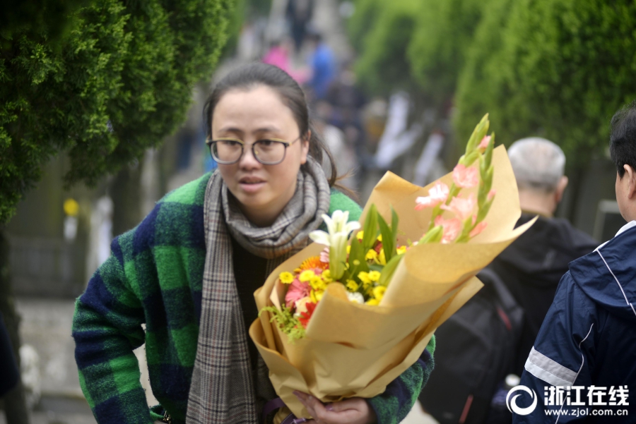 4月5日清明節(jié)上午,前往浙江省定舟山市定海區(qū)清陵掃墓人絡(luò)繹不絕,不少掃墓人用鮮花祭祀,寄托哀思懷念逝去的親人,倡導(dǎo)環(huán)保綠色的清明。(浙江在線拍友 胡社友 攝)