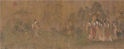 《洛神賦圖》取材于曹植的《洛神賦》,是東晉顧愷之的畫(huà)作。它將“曹植與洛水之神相會(huì)、相知、相愛(ài),卻因人神之戀無(wú)望而依依惜別”的凄美愛(ài)情故事表達(dá)得淋漓盡致。這幅畫(huà)的原作遺失,現(xiàn)存于世的是宋代的四件摹本,分別藏于北京故宮博物院、遼寧省博物館和美國(guó)弗利爾美術(shù)館。