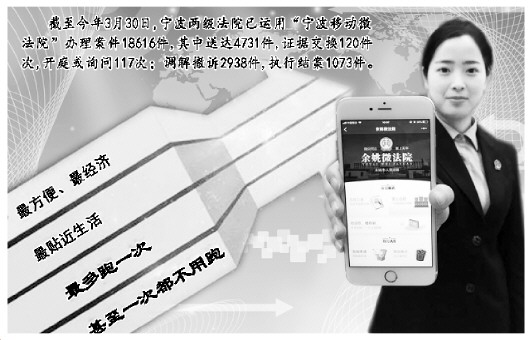 為適應(yīng)移動(dòng)互聯(lián)網(wǎng)時(shí)代的訴訟需求,進(jìn)一步規(guī)范“寧波移動(dòng)微法院”的運(yùn)用,3月26日,涵蓋全部訴訟環(huán)節(jié)的《寧波移動(dòng)微法院訴訟規(guī)程(試行)》在寧波法院實(shí)施,這也是全國(guó)首個(gè)移動(dòng)電子訴訟規(guī)程。