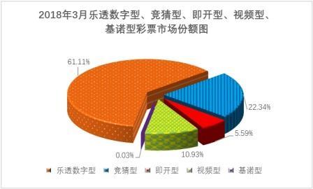 3月份,樂透數(shù)字型彩票銷售245.59億元,同比增加1.12億元,增長0.5%;競猜型彩票銷售89.79億元,同比增加22.10億元,增長32.7%;即開型彩票銷售22.45億元,同比減少1.65億元,下降6.8%;視頻型彩票銷售43.92億元,同比增加1.02億元,增長2.4%;基諾型彩票銷售0.12億元,同比減少0.06億元,下降31.6%。3月份,樂透數(shù)字型、競猜型、即開型、視頻型、基諾型彩票銷售量分別占彩票銷售總量的61.11%、22.34%、5.59%、10.93%、0.03%。