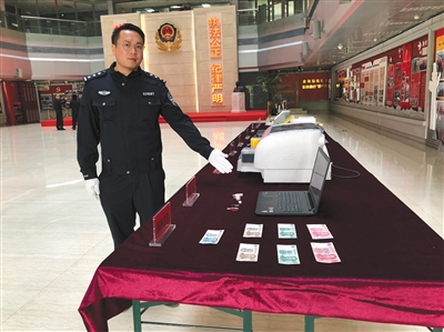 北京市刑偵總隊,警方現(xiàn)場展示制造假幣的相關設備工具。