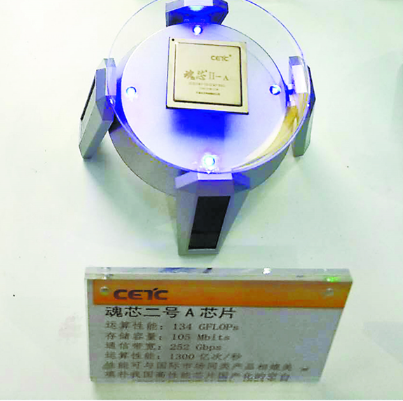 2012年,中國電科38所推出我國自主研發(fā)的首款實(shí)用型高性能浮點(diǎn)通用DSP(數(shù)字信號處理器)芯片——“魂芯一號”。 “魂芯一號”每秒能完成300億次浮點(diǎn)運(yùn)算或80億次浮點(diǎn)乘法累加運(yùn)算,可謂真正的中國“芯”、民族“魂”,其成功應(yīng)用打破了國外高性能芯片在中國的壟斷地位。就性能而言,“魂芯一號”的性能高于同期市場同類DSP芯片3倍至4倍,并成功應(yīng)用在我國空警-500預(yù)警機(jī)雷達(dá)等多個(gè)國防科技裝備上,讓空警-500實(shí)現(xiàn)了“小平臺、大預(yù)警、高性能、新一代”的戰(zhàn)略目標(biāo),成為我國首款廣泛應(yīng)用于國防科技裝備的高端自主數(shù)字信號處理器。