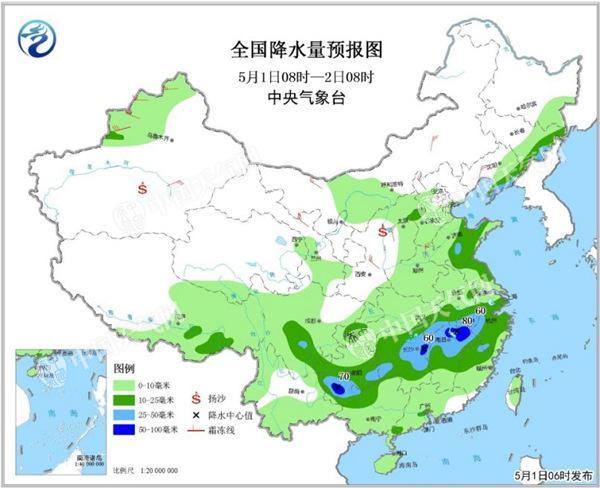 中央氣象臺預(yù)計(jì),5月1日至3日,我國中東部自西向東將有一次較大范圍降水天氣過程,其中,東北地區(qū)東南部、黃淮東部、西南地區(qū)東部和南部、江漢南部、江南大部、華南中西部等地的部分地區(qū)有中到大雨,局地暴雨或大暴雨,上述局部地區(qū)將伴有短時(shí)強(qiáng)降水、雷暴大風(fēng)等強(qiáng)對流天氣。