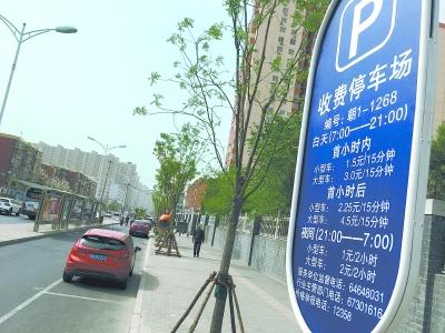 路側(cè)停車一刻鐘免費,已經(jīng)在正規(guī)管理的停車場實施了,但路側(cè)停車的收費牌卻大多還未更新。 記者 甘南 攝