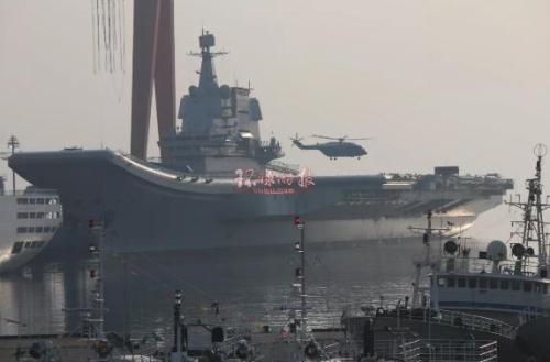 在剛過去的周末,國產(chǎn)航母再度成為國內(nèi)網(wǎng)絡以及周邊地區(qū)的熱點話題。5日早晨,一架直-18改進型直升機降落在停泊于大連造船廠碼頭的國產(chǎn)航母甲板上,數(shù)分鐘后起飛離開。這是國產(chǎn)航母首次進行直升機起降測試,此前一天,遼寧海事局在官網(wǎng)上貼出禁航公告,宣布由于軍事任務的緣故,渤海海峽黃海北部自當日下午4點開始,禁航一周。多方猜測,國產(chǎn)航母海試在即。