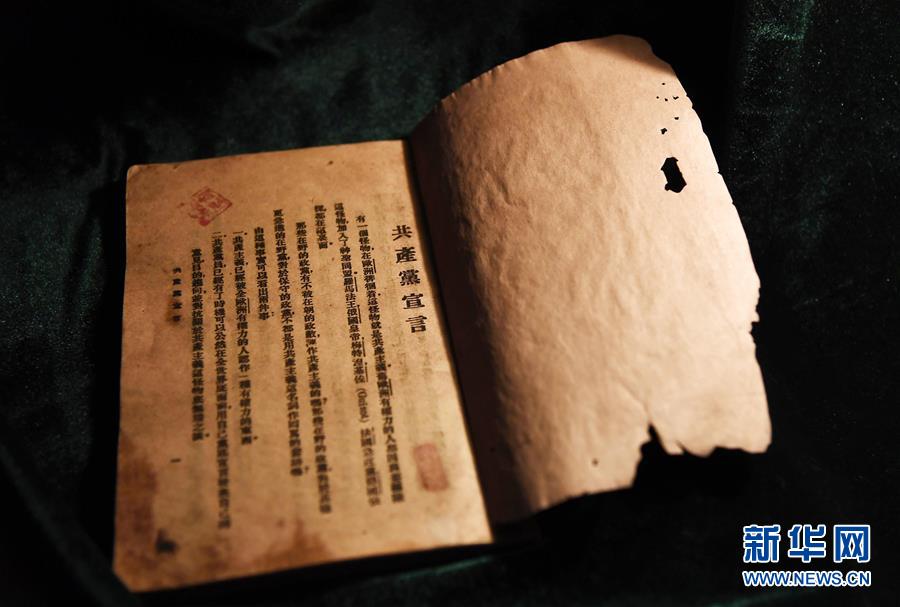 這是廣饒縣《共產(chǎn)黨宣言》紀念館收藏的1920年8月出版的《共產(chǎn)黨宣言》中文首譯本(4月12日攝)。新華社記者 郭緒雷 攝