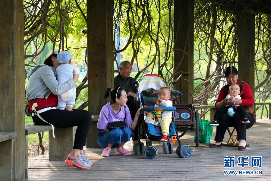 廣饒縣大王鎮(zhèn)居民在文化廣場休息(4月25日攝)。新華社發(fā)(王南 攝)
