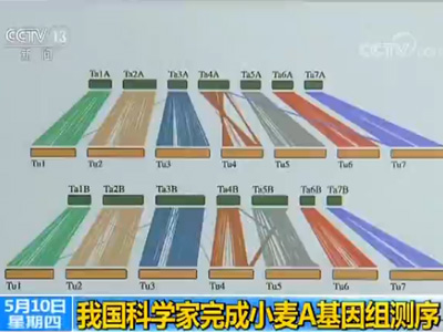 科研人員通過對烏拉爾圖小麥的研究,首次在國際上繪制出了小麥A基因組7條染色體的分子圖譜,并注釋出了全部41507個蛋白編碼基因。