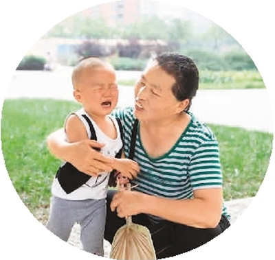 北京某社區(qū)內(nèi)一位隨遷老人正在安慰兩歲多的孫子,孩子因為摔倒啼哭不止。(來源:央廣網(wǎng))