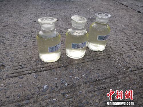 環(huán)保局工作人員采集的湖水水質(zhì)樣本。中新網(wǎng)記者 于曉 攝