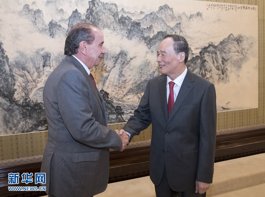 王岐山轉達了習近平主席對巴西總統(tǒng)特梅爾的親切問候。他表示,國與國相交,人民交往是基礎,元首引領是關鍵。中巴是全面戰(zhàn)略伙伴,同為發(fā)展中大國,對國際問題有廣泛共識。雙方經(jīng)濟文化各具特色,人民友好情誼深厚,各領域合作成績巨大。不斷發(fā)展的中巴關系賦予雙方合作許多新內(nèi)容,雙方要深入領會兩國元首對中巴關系定位,與時俱進發(fā)揮好中巴高委會等機制作用,不斷將合作潛力轉化為兩國人民福祉,為構建人類命運共同體做出貢獻。