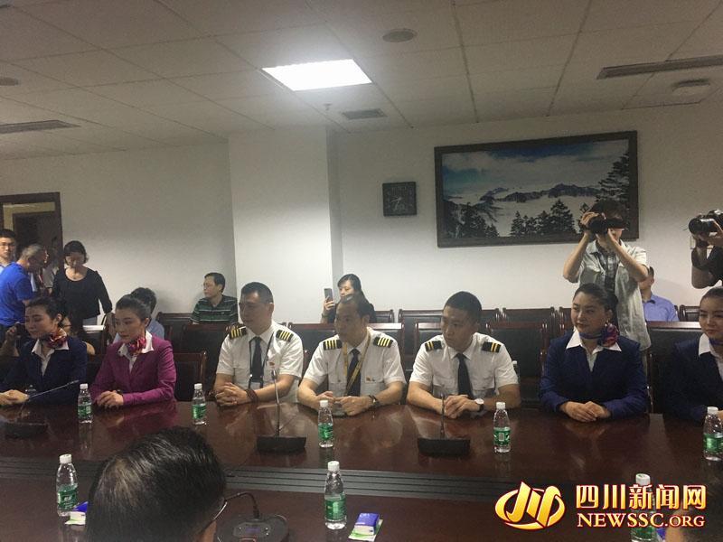 5月14晚8點30分,四川新聞網(wǎng)記者在成都市第一人民醫(yī)院見到了四川航空公司3U8633機組機長劉傳健及機組成員,記者發(fā)現(xiàn)機組成員狀態(tài)良好。在代表機組向媒體介紹相關(guān)情況時,機長劉傳健聲音洪亮,精神飽滿。劉傳健說,“感謝社會各界對機組的關(guān)心和厚愛。今天發(fā)生的這件事應(yīng)該是很罕見的,但是經(jīng)過機組的共同努力,做到人機安全,保障了我們所有的旅客安全,我和我的機組是非常榮幸的?!?/p>