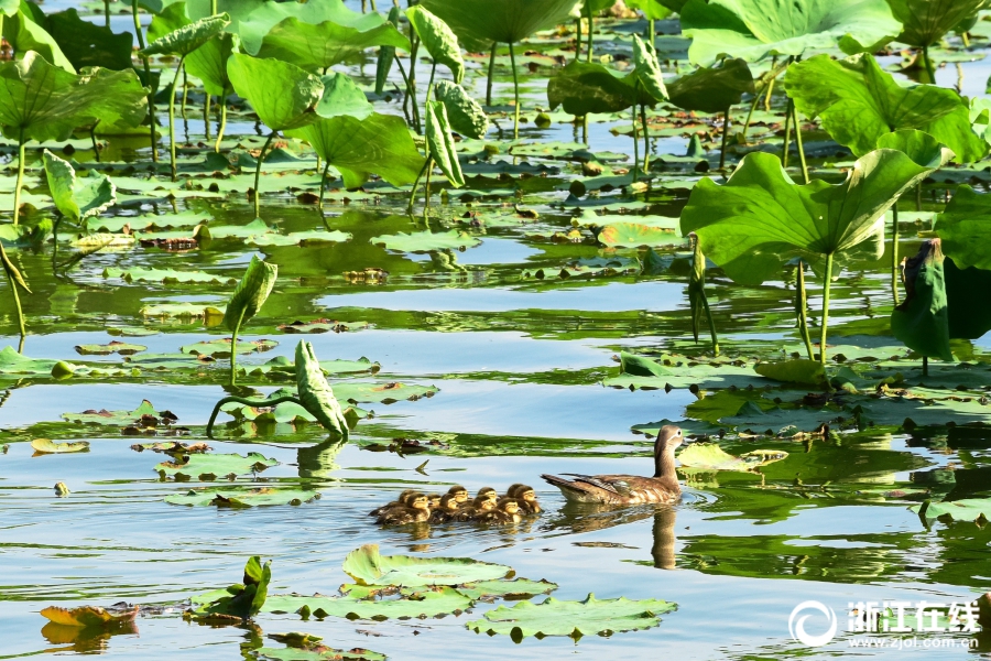 5月15日,西湖斷橋荷塘出現(xiàn)了今年第4窩小鴛鴦,此次共10只。與西湖第1窩時的獨苗相比,此窩可算是一個大家庭, 這讓鴛鴦媽媽忙不過來了。(浙江在線拍友 里爾 攝)