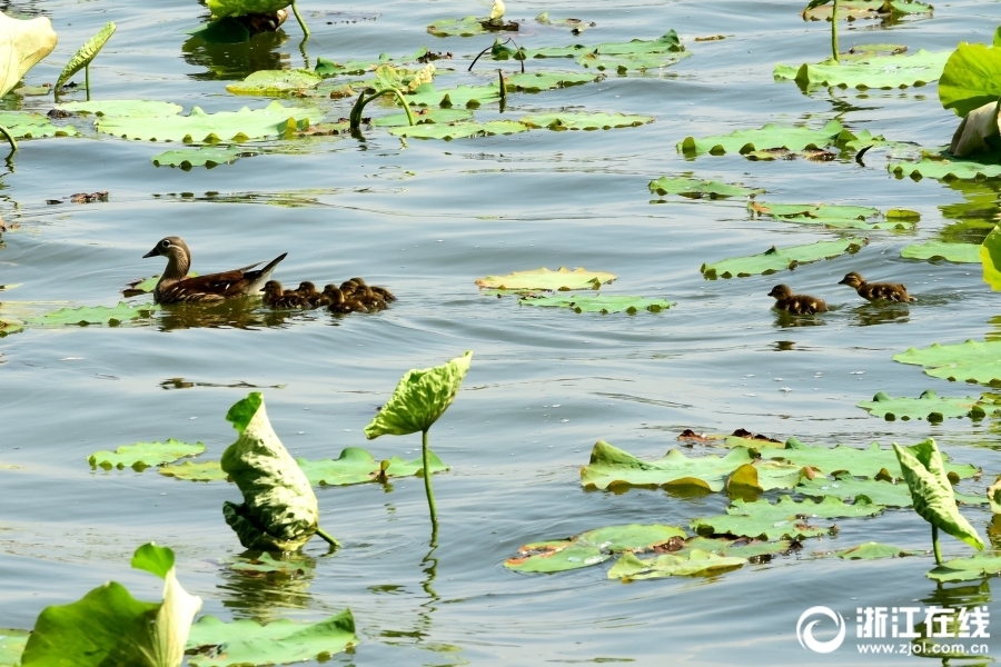 5月15日,西湖斷橋荷塘出現(xiàn)了今年第4窩小鴛鴦,此次共10只。與西湖第1窩時(shí)的獨(dú)苗相比,此窩可算是一個(gè)大家庭, 這讓鴛鴦媽媽忙不過來了。(浙江在線拍友 里爾 攝)