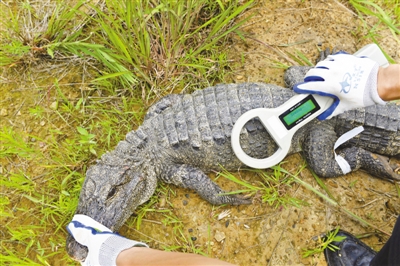 “通俗地說,電子芯片就相當(dāng)于揚(yáng)子鱷的身份證,我們再次捕捉到這只揚(yáng)子鱷時(shí),能迅速確定它的各種信息;無線電發(fā)射器可以給揚(yáng)子鱷定位,讓我們知道它在哪?!卑不論P(yáng)子鱷國家級(jí)自然保護(hù)區(qū)管理局宣傳教育科科長汪仁平說。