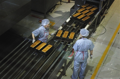 門楣上,暗紅色的招牌上噴著鮮黃的大字——“百年義利”。這個隸屬于北京第一輕工食品集團(簡稱“一輕”)的百年老店是一家國有企業(yè),自1951年在北京建廠至今已生存67年。