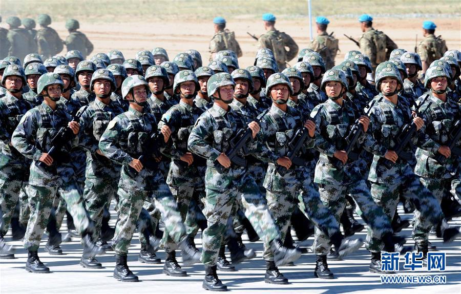 2014年8月24日,中國(guó)人民解放軍參演部隊(duì)在“和平使命—2014”上海合作組織成員國(guó)武裝力量聯(lián)合反恐軍事演習(xí)開(kāi)始儀式上舉行分列式。17歲,恰如風(fēng)華正茂的青年。自世紀(jì)之初誕生于上海黃浦江畔,上海合作組織走過(guò)一段不平凡的發(fā)展歷程,和平穩(wěn)定能力不斷增強(qiáng)、發(fā)展動(dòng)能不斷涌現(xiàn)、影響力不斷提升,邁入蓬勃發(fā)展新階段。17載風(fēng)雨同舟,上合組織走出了一條相互尊重、公平正義、合作共贏的新型國(guó)際關(guān)系之路。初夏6月,上合組織成員國(guó)元首理事會(huì)第十八次會(huì)議將在中國(guó)海濱城市青島舉行。弘揚(yáng)“上海精神”、總結(jié)成功經(jīng)驗(yàn)、共同規(guī)劃未來(lái)、推動(dòng)擴(kuò)員后的上合組織加強(qiáng)新老成員間的合作,青島峰會(huì)必將成為上合組織發(fā)展史上一座新的里程碑,續(xù)寫(xiě)這一新型區(qū)域組織的新篇章。新華社記者 張領(lǐng) 攝