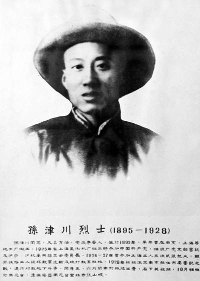 1925年8月經(jīng)彭干臣等介紹,孫津川加入中國共產(chǎn)黨,并當(dāng)選為滬寧鐵路工人協(xié)進(jìn)會委員。不久,中共吳淞機(jī)廠特別支部成立,孫津川被選為特支書記。