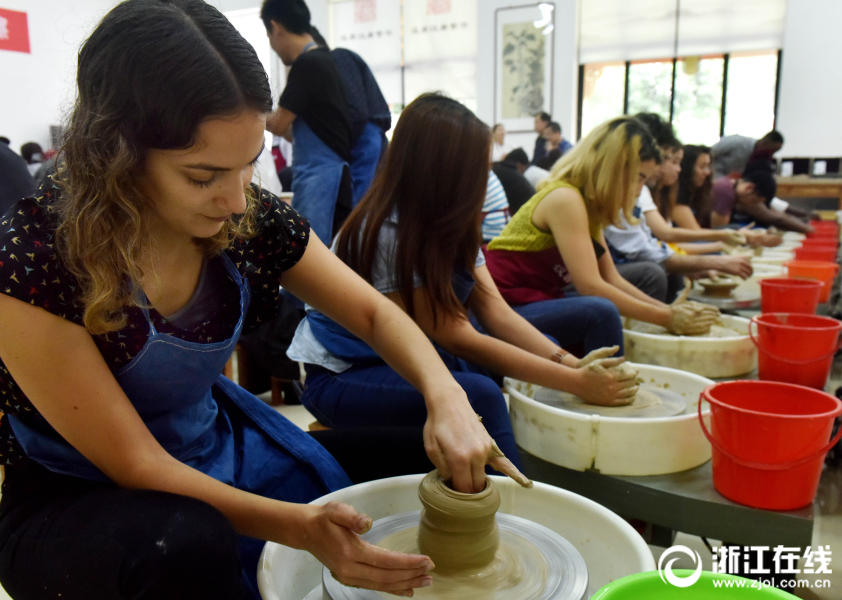 2018年6月3日,來(lái)自30多個(gè)國(guó)家的70多名留學(xué)生,在武義漢坊婺窯體驗(yàn)館開心學(xué)習(xí)拉坯。