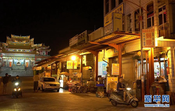 這是在臺灣嘉義縣東石村的一處夜晚街景(4月9日攝)。新華社記者林善傳攝