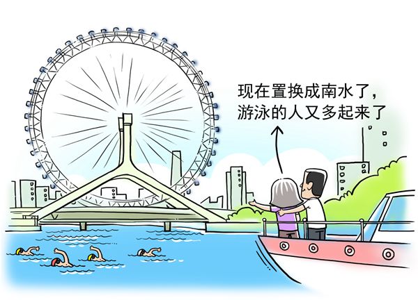 現(xiàn)在置換成南水,游泳的人又多起來了。