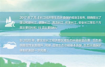 長(zhǎng)江大保護(hù),規(guī)劃先行。2016年,《長(zhǎng)江經(jīng)濟(jì)帶發(fā)展規(guī)劃綱要》印發(fā)。去年7月,《長(zhǎng)江經(jīng)濟(jì)帶生態(tài)環(huán)境保護(hù)規(guī)劃》發(fā)布,提出了建設(shè)和諧長(zhǎng)江、健康長(zhǎng)江、清潔長(zhǎng)江、優(yōu)美長(zhǎng)江、安全長(zhǎng)江等五個(gè)方面主要目標(biāo)和19項(xiàng)主要指標(biāo)——到2020年,要實(shí)現(xiàn)長(zhǎng)江經(jīng)濟(jì)帶區(qū)域生態(tài)環(huán)境明顯改善,生態(tài)系統(tǒng)穩(wěn)定性全面提升,河湖、濕地生態(tài)功能基本恢復(fù),生態(tài)環(huán)境保護(hù)體制機(jī)制進(jìn)一步完善;地表水質(zhì)量國(guó)控?cái)嗝妫c(diǎn)位)達(dá)到或優(yōu)于Ⅲ類水質(zhì)比例達(dá)到75%以上,劣Ⅴ類比例小于2.5%,地級(jí)及以上城市集中式飲用水水源水質(zhì)達(dá)到或優(yōu)于Ⅲ類比例達(dá)到97%以上。