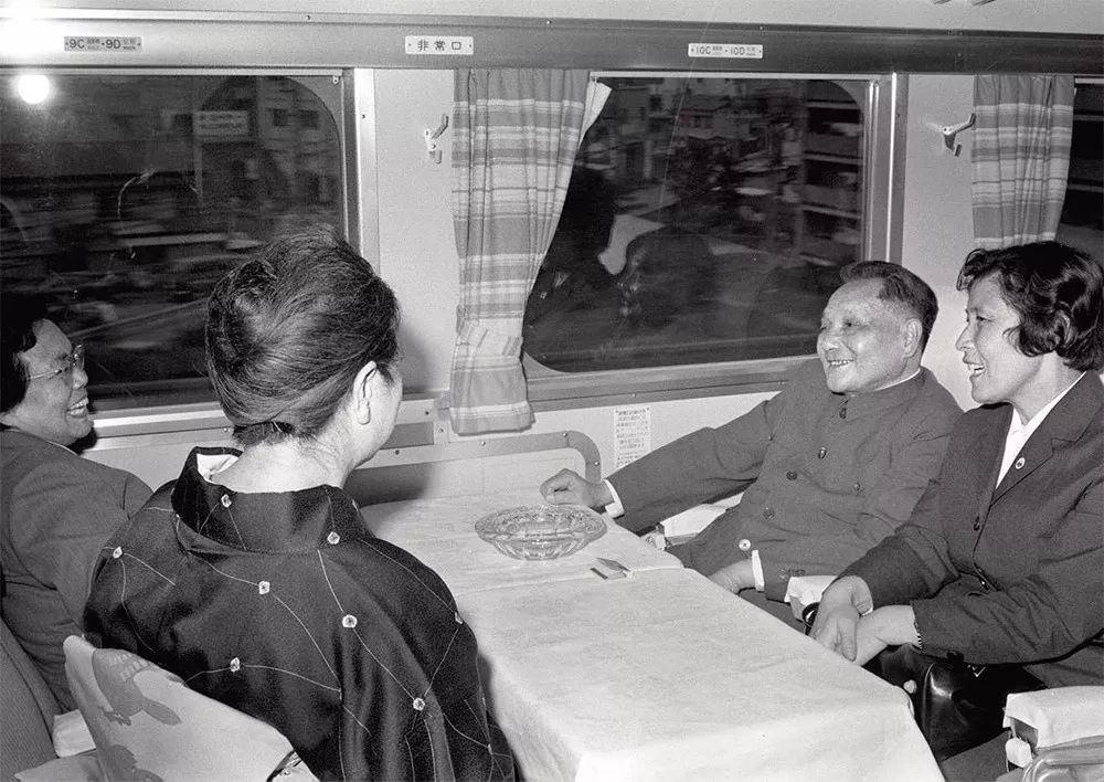 ▲ 1978 年10 月26 日,鄧小平離開(kāi)東京乘新干線超特快列車(chē)赴京都訪問(wèn)。這是鄧小平和夫人卓琳乘坐“光- 81 號(hào)”超特快列車(chē)