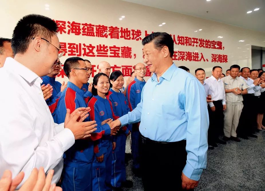 ▲ 4月12日,習(xí)近平總書(shū)記在位于三亞的中國(guó)科學(xué)院深??茖W(xué)與工程研究所,同“深海勇士”號(hào)載人潛水器設(shè)計(jì)師和深潛團(tuán)隊(duì)親切交談 李學(xué)仁攝