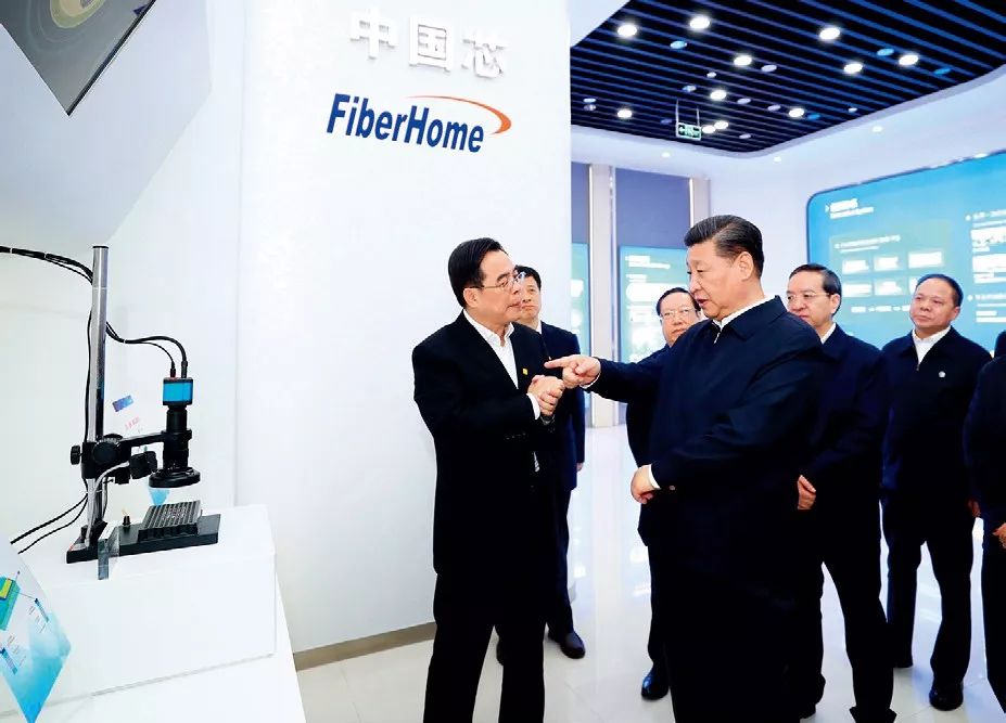 ▲ 4月26日上午,習(xí)近平總書(shū)記在位于武漢東湖高新區(qū)的烽火科技集團(tuán)考察企業(yè)創(chuàng)新發(fā)展情況 謝環(huán)馳攝