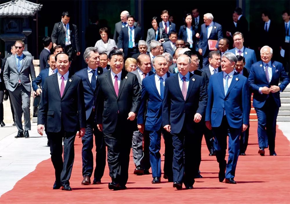 ▲ 2017年5月15日,在北京雁棲湖舉行的“一帶一路”國(guó)際合作高峰論壇第一階段會(huì)議結(jié)束后,習(xí)近平主席同與會(huì)領(lǐng)導(dǎo)人和國(guó)際組織負(fù)責(zé)人步出雁棲湖國(guó)際會(huì)議中心 饒愛(ài)民攝